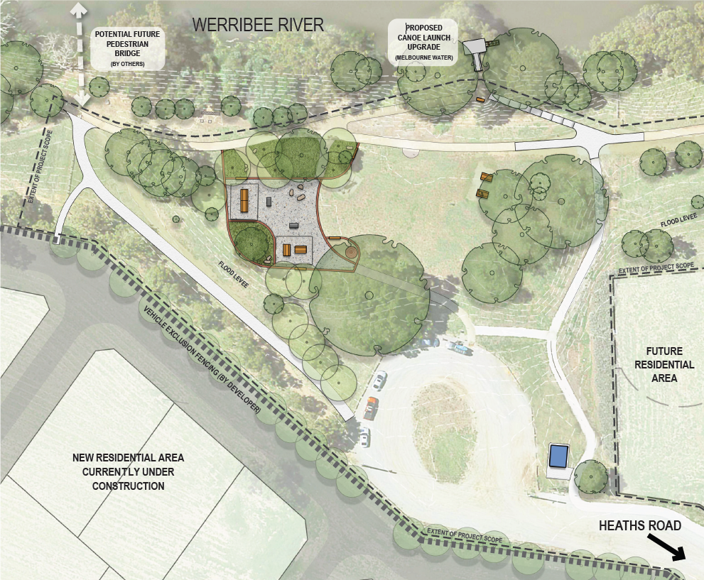 - A potential future pedestrian bridge over the Werribee River (exact location to be determined), which will connect to the future Werribee Township Regional Park.
